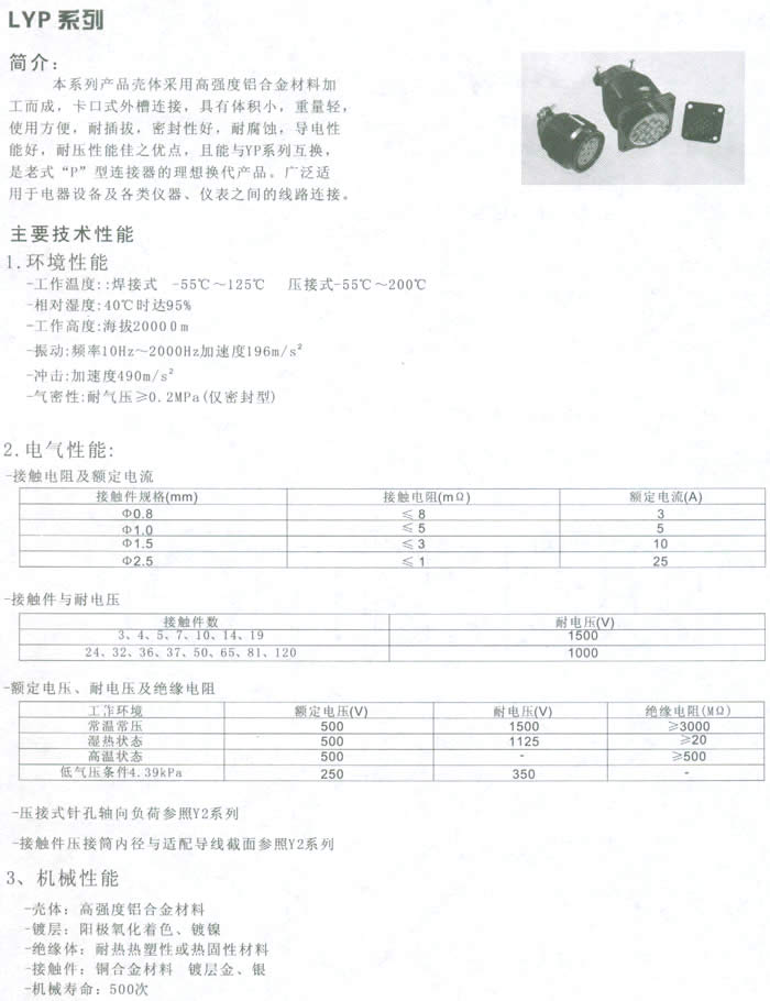 二、LYP系列圓形電連接器(航空插頭)主要技術性能