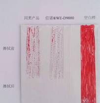 | 編號:JZXN-MP-60 2014年 7 月23日 應(yīng)用實驗名稱:防涂鴉助劑應(yīng)用實驗 應(yīng)用實驗?zāi)康模盒胖Z®WE-D9000與迪高5000應(yīng)用性能比較 應(yīng)用實驗過程: 1、測試方法:按JG/T 304-2011標(biāo)準(zhǔn)中規(guī)定進行。 2、測試用涂料配制及樣板制作 2.1聚酯氨基烤漆體系 |